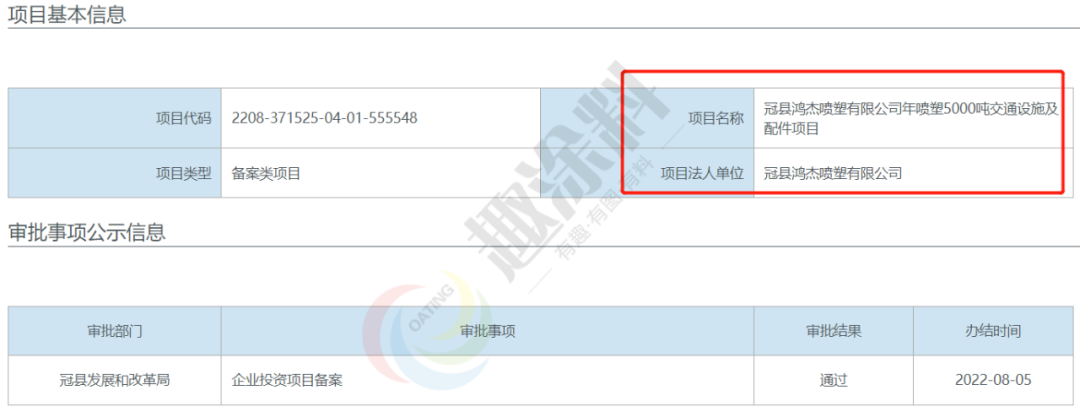 2022年8月5日,冠縣鴻杰噴塑有限公司,年噴塑5000噸交通設(shè)施及配件項(xiàng)目,在冠縣發(fā)展和改革局,進(jìn)行企業(yè)投資項(xiàng)目備案。