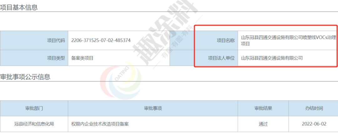 2022年6月2日,山東冠縣四通交通設(shè)施有限公司,噴塑線VOCs治理項(xiàng)目,在冠縣經(jīng)濟(jì)和信息化局,進(jìn)行權(quán)限內(nèi)企業(yè)技術(shù)改造項(xiàng)目備案。