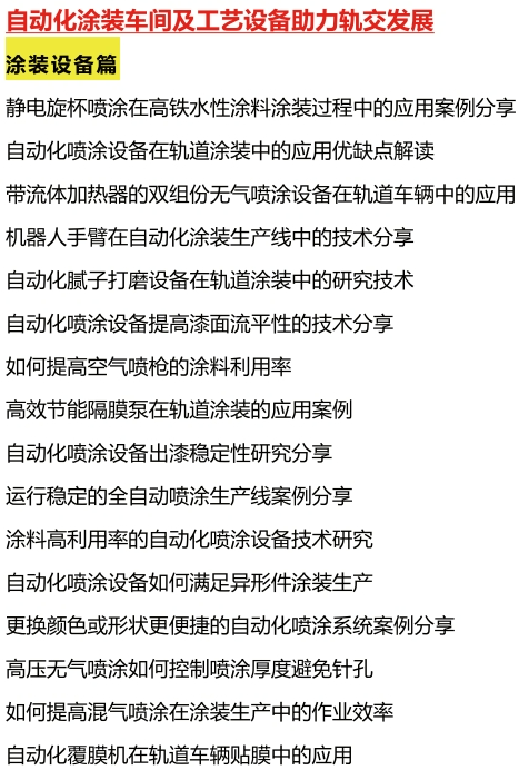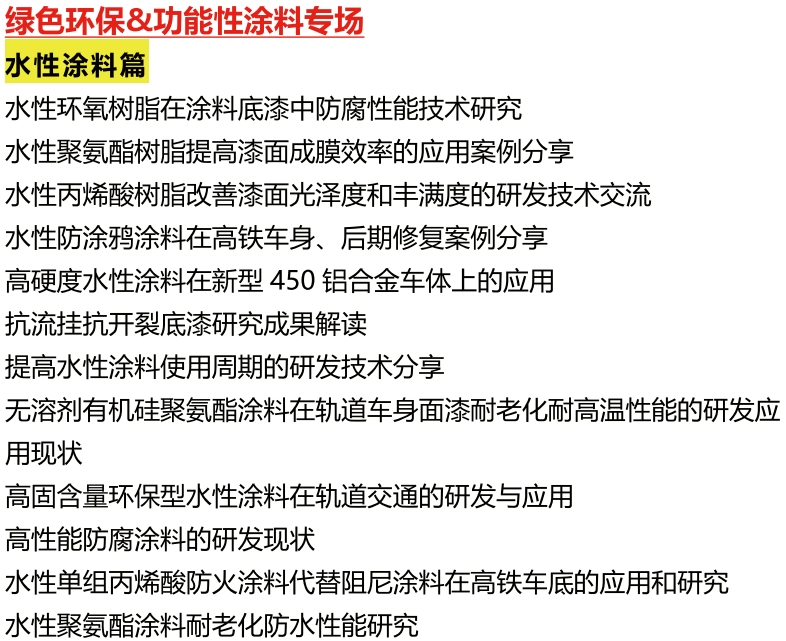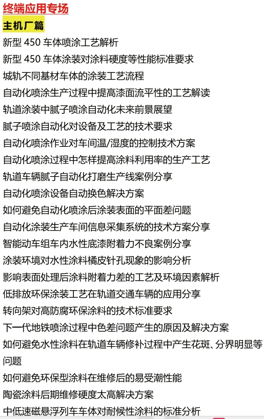 值得一提的是,本屆論壇主題鮮明。論壇聚焦涂料低VOC、功能性、綠色環(huán)保,推動涂裝工藝自動化、高效率發(fā)展。集中探討軌交涂料選材及涂裝產(chǎn)線建設(shè),全面挖掘主機廠、配件廠深度需求;