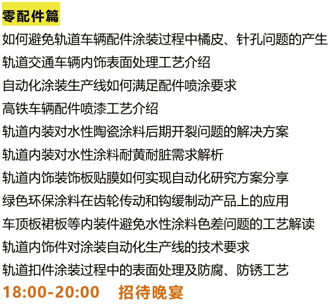 而且上下游產(chǎn)業(yè)聯(lián)動、形式多樣。中車各主機廠、零部件配套企業(yè)、院校、涂料配套企業(yè)、第三方設(shè)備供應(yīng)商及檢測企業(yè)上下游聯(lián)動,主題發(fā)言+展區(qū)展示+茶歇交流+晚宴互動+工廠參觀 全方位互動交流。