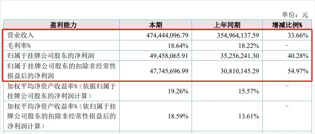 2023年,泰達(dá)新材實現(xiàn)營業(yè)收入4.74億元,同比增長33.66%;實現(xiàn)凈利潤4945.81萬元,同比增長40.28%;實現(xiàn)扣非后凈利潤4774.57萬元,同比增長54.97%。