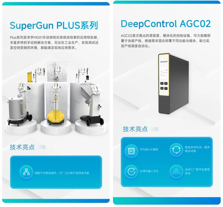 本次新品發(fā)布會(huì),聚焦?jié)珊嘟?年來(lái)推出的SuperGun、SuperPump等系列新品,更有首發(fā)DeepControl系新品——AGC02公開(kāi)亮相。這些新品,不僅是澤亨強(qiáng)大研發(fā)實(shí)力的見(jiàn)證,更是澤亨智能化粉末涂裝解決方案的一次全新蛻變。