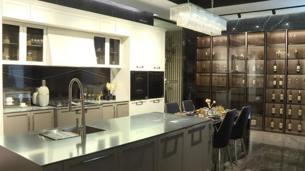 憑借敏銳的紅利嗅覺,百能家居由單品向全屋定制的戰(zhàn)略轉(zhuǎn)型,逐步將產(chǎn)品品類擴(kuò)充至不銹鋼櫥柜、不銹鋼衣柜、不銹鋼陽臺柜、不銹鋼衛(wèi)浴柜等全品類產(chǎn)品。依據(jù)消費者審美變化,百能家居又在不銹鋼表面工藝深化處理下功夫,從原本的不銹鋼本色延伸到木紋、pet等多種樣式,從外觀上超越傳統(tǒng)木材板的風(fēng)格效果,呈現(xiàn)精致細(xì)節(jié)。