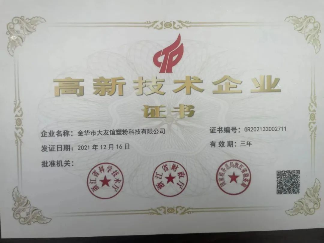 年年獲榮譽顯示出有關(guān)政府部門對大友誼塑粉研發(fā)和創(chuàng)新能力的認可
