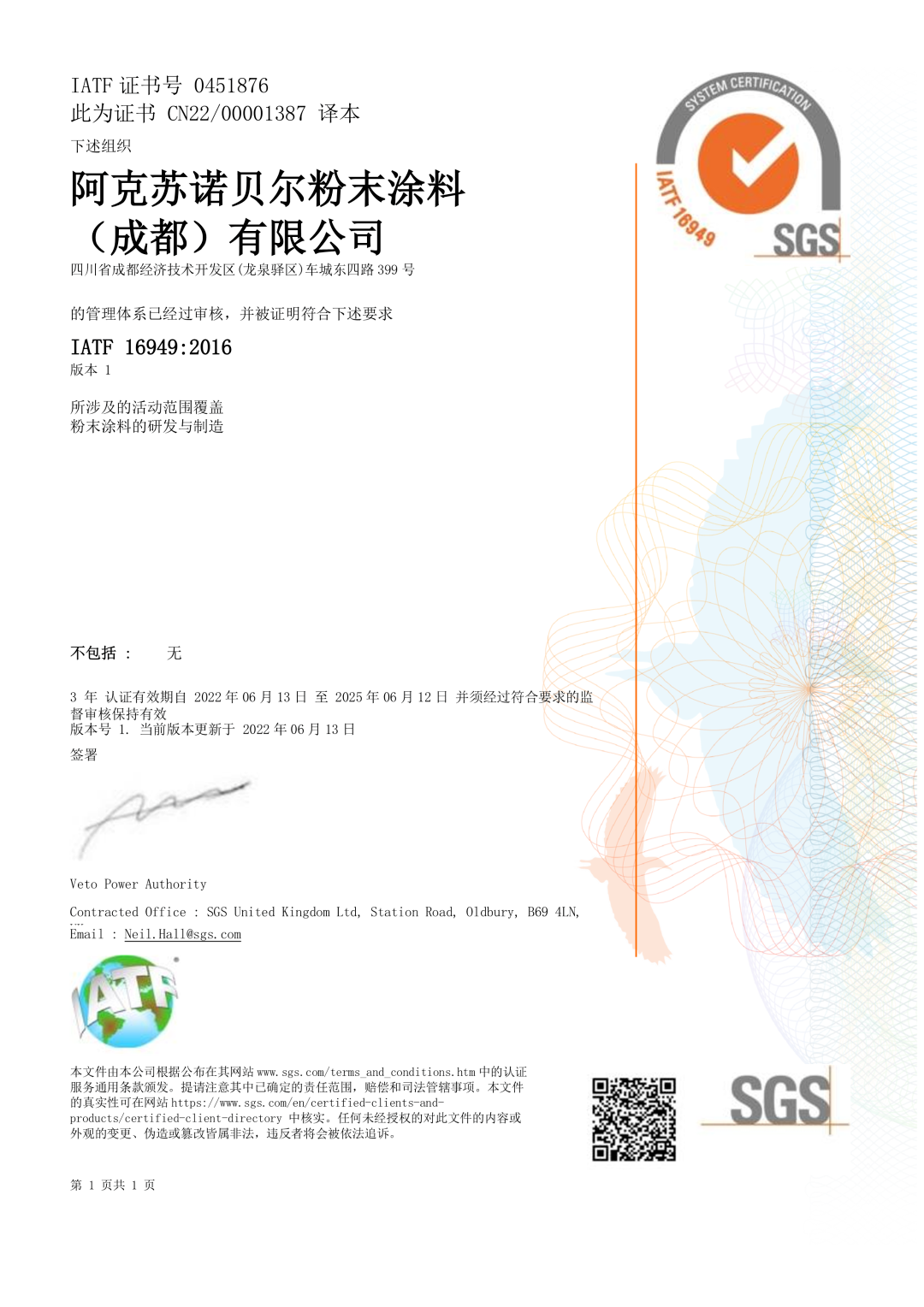 2022年8月,阿克蘇諾貝爾宣布其在成都的粉末涂料工廠完成IATF16949質(zhì)量管理體系認(rèn)證。這是阿克蘇諾貝爾粉末涂料在中國(guó)第二家取得IATF16949質(zhì)量體系認(rèn)證的工廠。這一認(rèn)證的獲得標(biāo)志著阿克蘇諾貝爾粉末涂料將持續(xù)加大在汽車及交通運(yùn)輸領(lǐng)域的投資和布局,成都工廠將與常州工廠一起,用高品質(zhì)的產(chǎn)品和解決方案服務(wù)全國(guó)的汽車客戶……