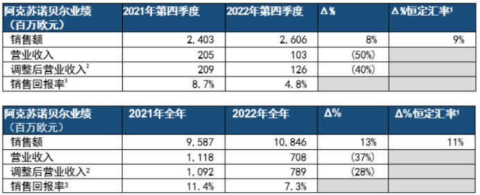 “展望未來,我們將繼續(xù)通過利潤(rùn)管理與成本削減舉措來緩解成本上漲持續(xù)帶來的壓力,并結(jié)合當(dāng)前市場(chǎng)情況,力爭(zhēng)在2023年實(shí)現(xiàn)12至15億歐元的調(diào)整后息稅折舊攤銷前利潤(rùn)目標(biāo)?!卑⒖颂K諾貝爾首席執(zhí)行官補(bǔ)充道。