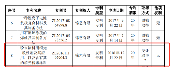 趣涂料(趣涂網(wǎng))注意到,錦藝新材近年不斷加強在粉末涂料方面的研發(fā)投入,公司現(xiàn)擁有“一種粉末涂料用耐沖擊復(fù)合材料及改性粉末涂料”和“粉末涂料用消光改性劑及其應(yīng)用化、以及含有其的消光粉末涂料”兩項發(fā)明專利。