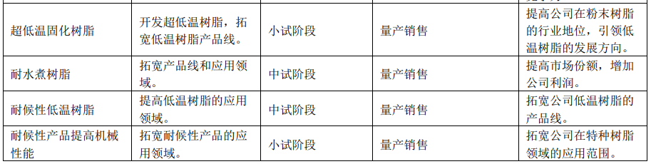 趣涂料(趣涂網(wǎng))了解到,企業(yè)根據(jù)市場、客戶需求和年度產(chǎn)品開發(fā)計(jì)劃,對相關(guān)產(chǎn)品進(jìn)行開發(fā),2022年中試定型多個(gè)產(chǎn)品,包括HAA固化低成本產(chǎn)品、TGIC固化低成本產(chǎn)品、在現(xiàn)有產(chǎn)品基礎(chǔ)上提高耐候性的產(chǎn)品以及戶外消光樹脂,已經(jīng)量產(chǎn)的產(chǎn)品有5個(gè),戶內(nèi)產(chǎn)品共中試定型6個(gè)產(chǎn)品,已經(jīng)量產(chǎn)的產(chǎn)品有2個(gè)。江蘇睿浦成功開發(fā)了多款低溫固化、超耐候以及不含有機(jī)錫的產(chǎn)品,拓寬了產(chǎn)品的應(yīng)用領(lǐng)域,包括MDF板材、玻璃鋼、金屬合金、復(fù)合材料、工程機(jī)械等領(lǐng)域。