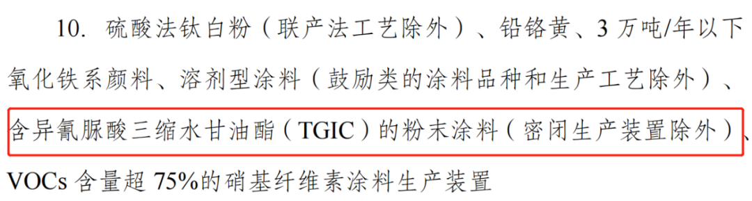 這意味著,將為TGIC粉末涂料行業(yè)“松綁”,含異氰脲酸三縮水甘油酯(TGIC)的粉末涂料(密閉生產(chǎn)裝置除外)已不再是國家限制類產(chǎn)業(yè),這將對整個TGIC行業(yè)重大利好,粉末涂料也將迎來重大發(fā)展機遇。