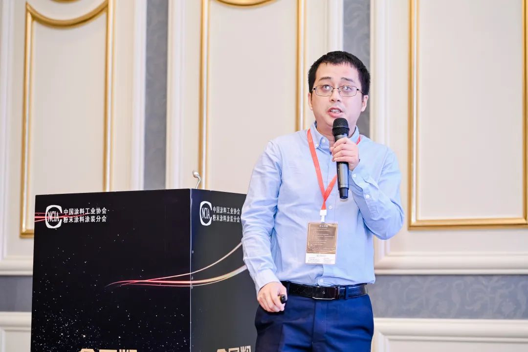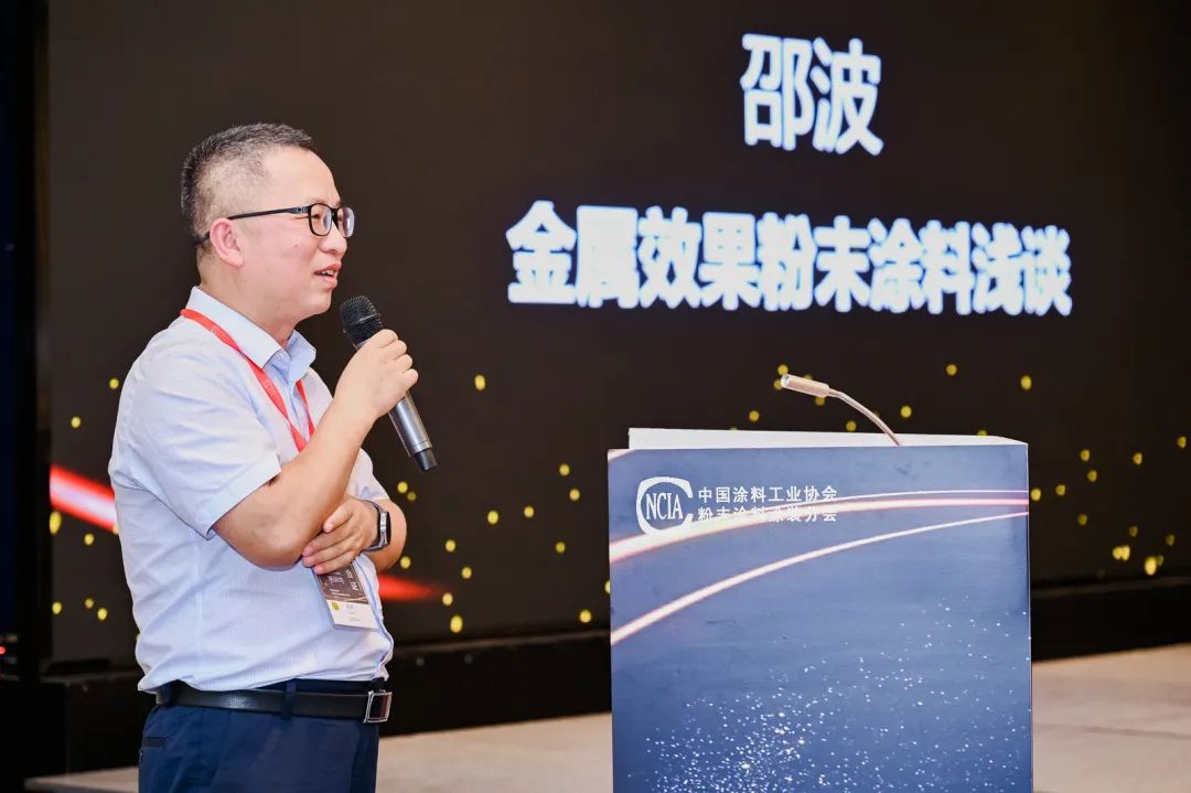 邵波作《金屬效果粉末涂料淺談》的主題分享。他主要從配方設計;設備、工藝及檢測和金屬粉未來的發(fā)展三個方面進行分享。