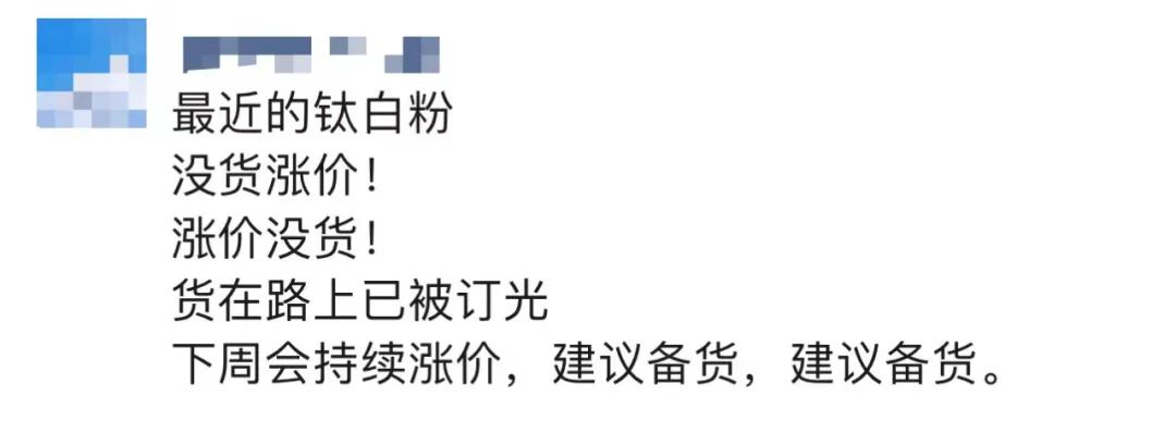 鈦白粉龍頭企業(yè)中核鈦白相關負責人表示,目前公司的鈦白粉產(chǎn)線已達滿產(chǎn)滿銷狀態(tài),產(chǎn)銷持續(xù)平衡,“如果市場價格走強,公司的鈦白粉產(chǎn)品出貨價也會隨之提漲,近期價格走高與市場供需出現(xiàn)緊張有一定關系?!?/p>
