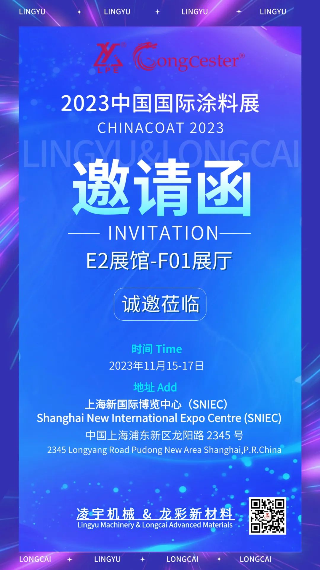 趣涂料(趣涂網(wǎng))注意到,2023年11月15-17日,中國(guó)國(guó)際涂料展將于上海新國(guó)際博覽中心(上海市浦東新區(qū)龍陽(yáng)路2345號(hào))隆重召開。凌宇&龍彩也將攜帶新品精彩亮相!