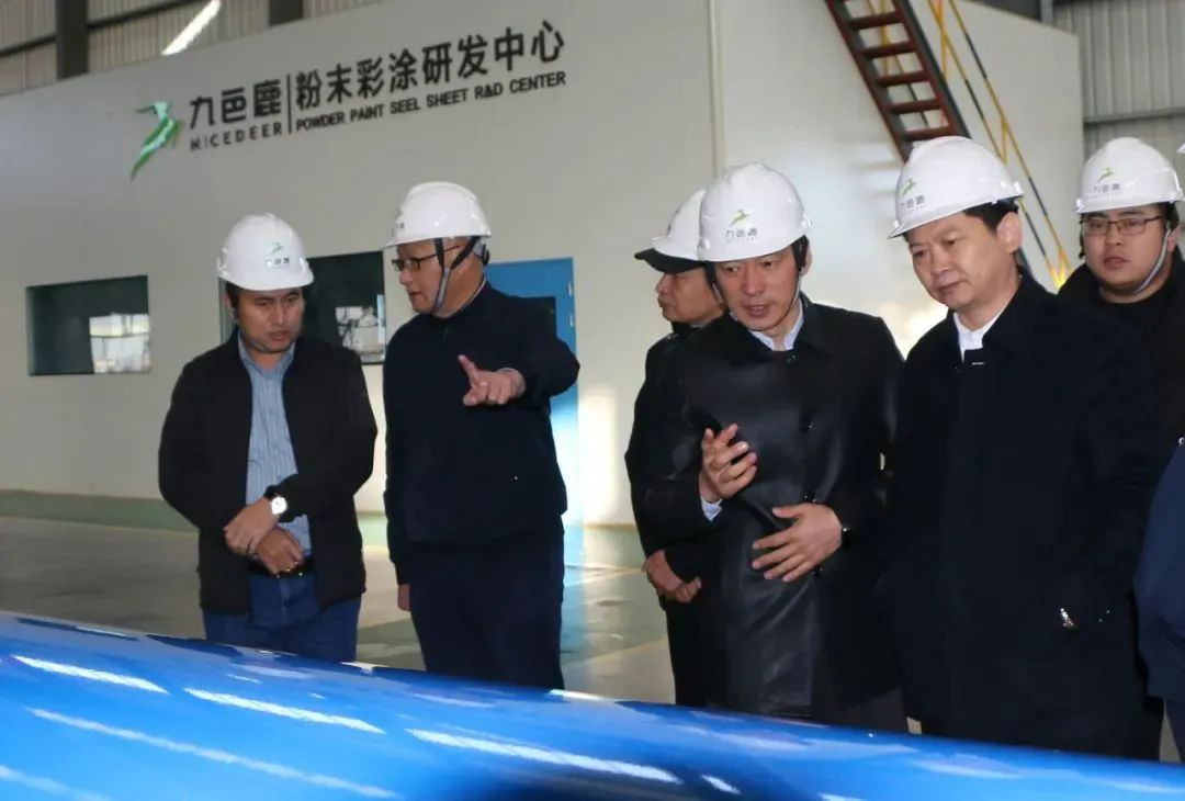 11月23日,俄羅斯工程院外籍院士、浙江大學(xué)求是特聘教授王立一行考察調(diào)研博興縣科技創(chuàng)新工作,參觀考察九色鹿公司粉末彩涂板生產(chǎn)情況。