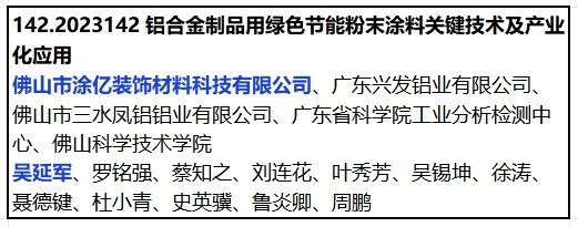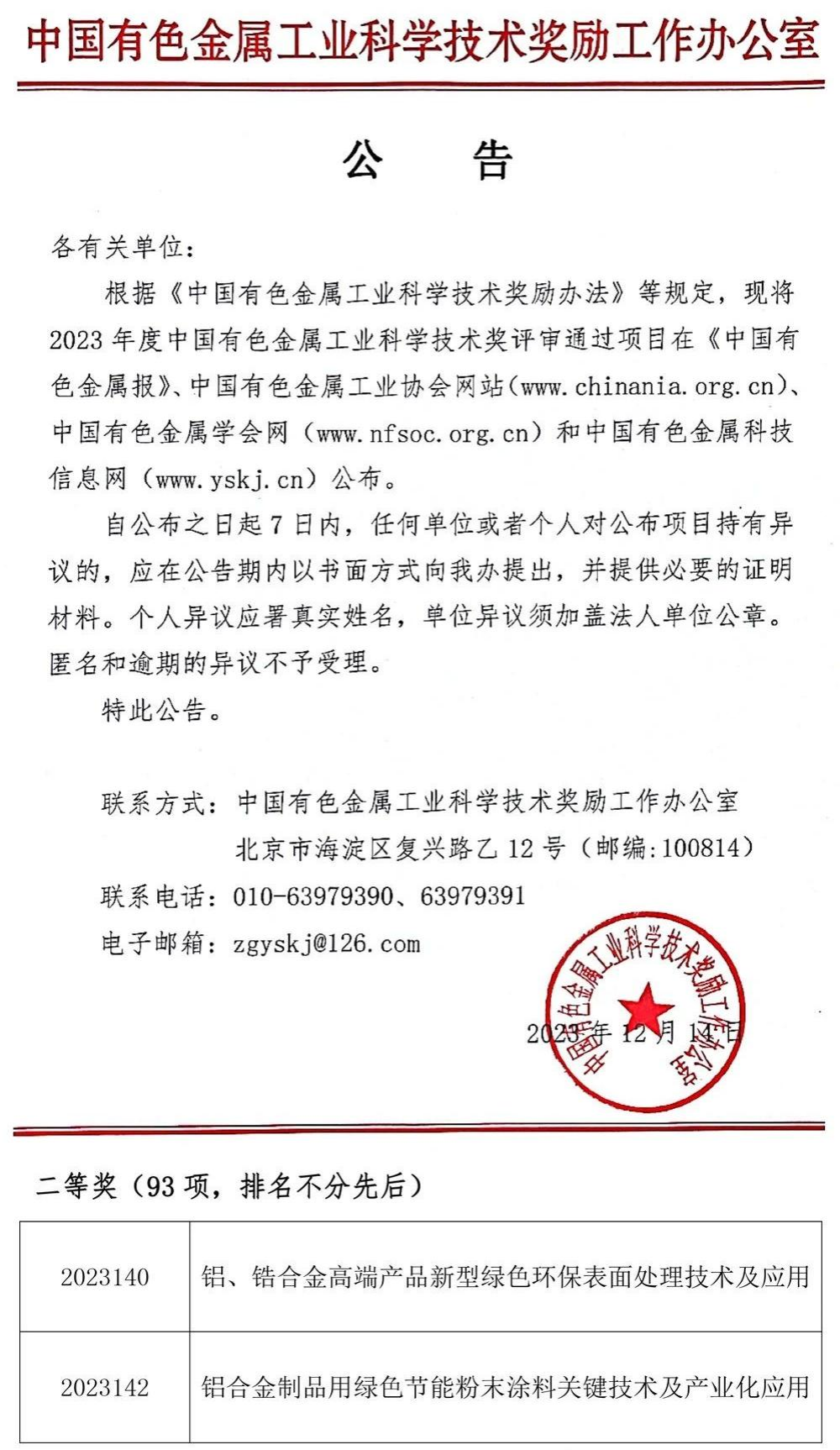 近日,中國有色金屬工業(yè)科學(xué)技術(shù)獎勵工作辦公室發(fā)布2023年度中國有色金屬工業(yè)科學(xué)技術(shù)獎評審?fù)ㄟ^項目公告,佛山市涂億裝飾材料科技有限公司(下稱“涂億”)主導(dǎo)的《鋁合金制品用綠色節(jié)能粉末涂料關(guān)鍵技術(shù)及產(chǎn)業(yè)化應(yīng)用》獲評2023年中國有色金屬工業(yè)科學(xué)技術(shù)獎二等獎。