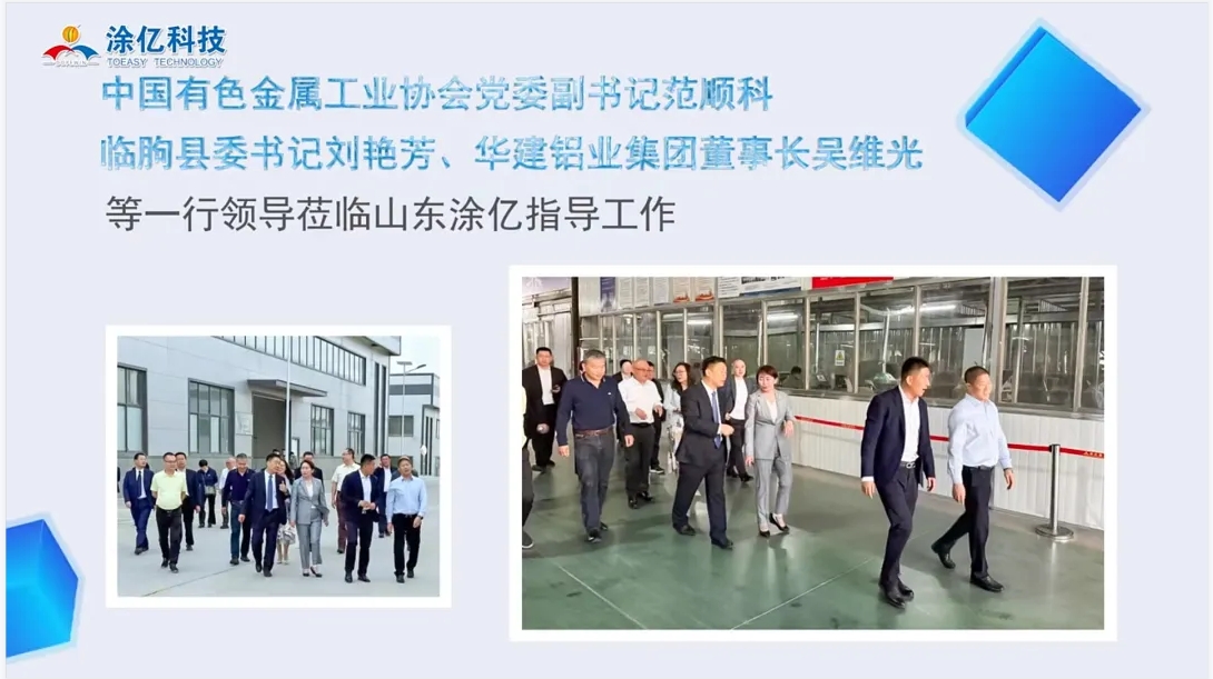在這一年里,涂億公司還迎來了多位領(lǐng)導的蒞臨指導。其中包括中國有色金屬工業(yè)協(xié)會黨委副書記范順科、臨朐縣委書記劉艷芳以及華建鋁業(yè)集團董事長吳維光等一行領(lǐng)導。他們的到訪不僅為涂億公司帶來了寶貴的行業(yè)經(jīng)驗和建議,也進一步提升了涂億公司在行業(yè)內(nèi)的知名度和影響力。