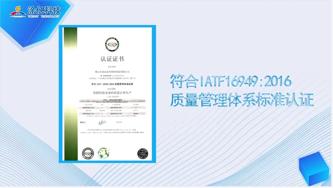 這些成果不僅體現(xiàn)了涂億科技在粉末涂料領(lǐng)域的專業(yè)實力和創(chuàng)新精神,更是對公司在推動行業(yè)標準化、國際化方面所做努力的最好證明。