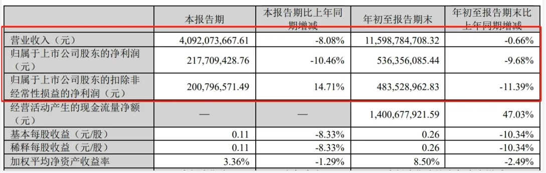 財(cái)報(bào)顯示,萬(wàn)豐奧威2023年前三季度實(shí)現(xiàn)營(yíng)業(yè)收入115.99億元,同比下滑0.66%;實(shí)現(xiàn)凈利潤(rùn)5.36億元,同比下滑9.68%;實(shí)現(xiàn)扣非后凈利潤(rùn)4.84億元,同比下滑11.39%。