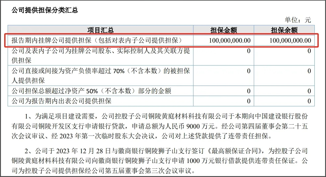 泰達(dá)新材于2023年12月28日與徽商銀行銅陵獅子山支行簽訂《最高額保證合同》,為控股子公司銅陵公司向徽商銀行銅陵獅子山支行申請(qǐng)1000萬元銀行借款提供連帶責(zé)任保證,擔(dān)保期間為2024年1月1日至2025年1月1日。公司為控股子公司提供擔(dān)保經(jīng)公司第五屆董事會(huì)第三次會(huì)議審議。