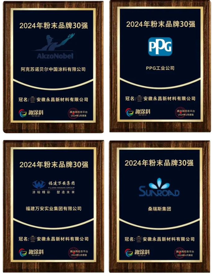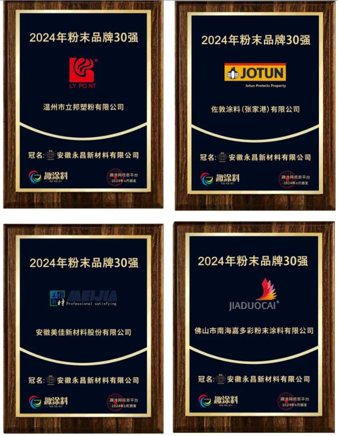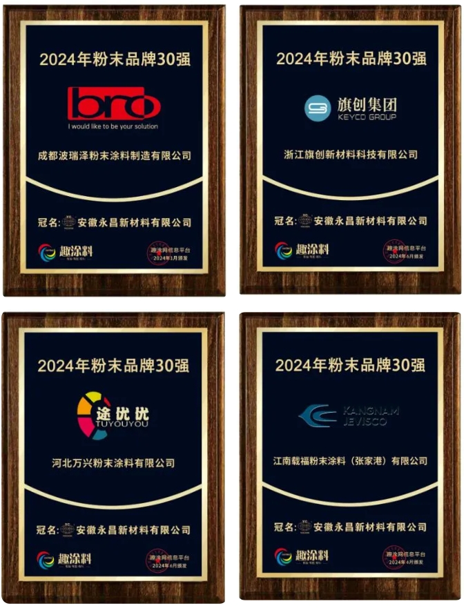 經(jīng)評(píng)選,阿克蘇諾貝爾中國(guó)涂料有限公司、PPG工業(yè)公司(含原華佳)、福建萬(wàn)安實(shí)業(yè)集團(tuán)有限公司、桑瑞斯集團(tuán)、老虎表面技術(shù)新材料(蘇州)有限公司、立邦涂料(中國(guó))有限公司、江蘇華光控股集團(tuán)有限公司、廣東睿智環(huán)保科技股份有限公司、金高麗集團(tuán)、廣東華江粉末科技有限公司、擎天材料科技有限公司、廣東涂?jī)|科技有限公司、廊坊艾格瑪新立材料科技有限公司、陜西藍(lán)晟新材料研發(fā)有限公司、佛山市俊美琪新材料科技有限公司、浙江超浪新材料有限公司、天津瑞遠(yuǎn)粉末涂料有限公司、聚華集團(tuán)、佛山市順德區(qū)均安鎮(zhèn)永基實(shí)業(yè)有限公司、廣東雅佳新型節(jié)能高分子材料有限公司、溫州市立邦塑粉有限公司、佐敦涂料(張家港)有限公司、安徽美佳新材料股份有限公司、佛山市南海嘉多彩粉末涂料有限公司、成都波瑞澤粉末涂料制造有限公司、浙江旗創(chuàng)新材料科技有限公司、河北萬(wàn)興粉末涂料有限公司、江南載福粉末涂料(張家港)有限公司、艾仕得粉末涂料(上海)有限公司、洛陽(yáng)樂(lè)卡粉末有限公司這30家粉末涂料企業(yè)憑借產(chǎn)品力、創(chuàng)新力、品牌力脫穎而出,榮獲“2024年粉末涂料品牌影響力30強(qiáng)”成為專注于優(yōu)質(zhì)產(chǎn)品的中國(guó)涂料品牌。