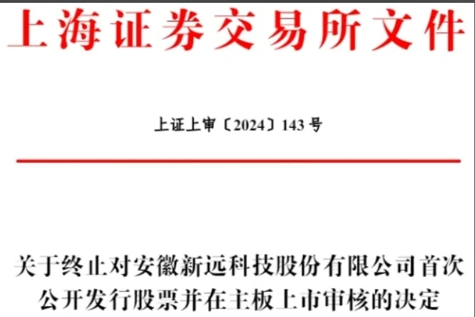 6月21日,上交所網(wǎng)站對外發(fā)布關(guān)于終止對安徽新遠科技股份有限公司(以下簡稱“新遠科技”)首次公開發(fā)行股票并在主板上市審核的決定。