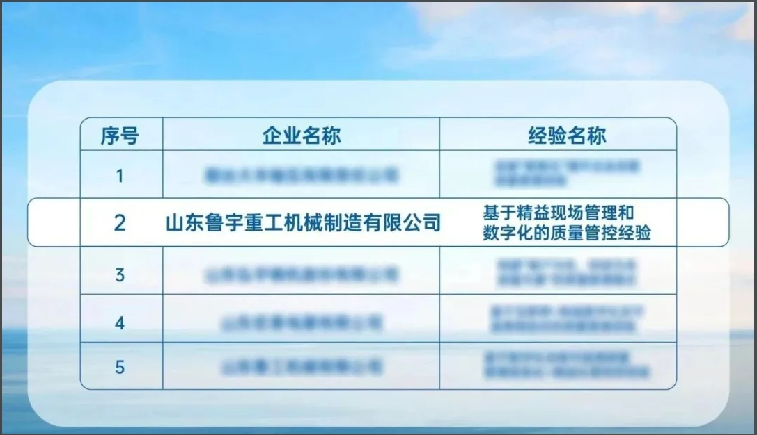 近日,山東省工業(yè)和信息化廳公示了2024年全省質(zhì)量標桿企業(yè)名單,魯宇重工“基于精益現(xiàn)場管理和數(shù)字化的質(zhì)量管控經(jīng)驗”成功入選為2024年全省質(zhì)量標桿企業(yè)。