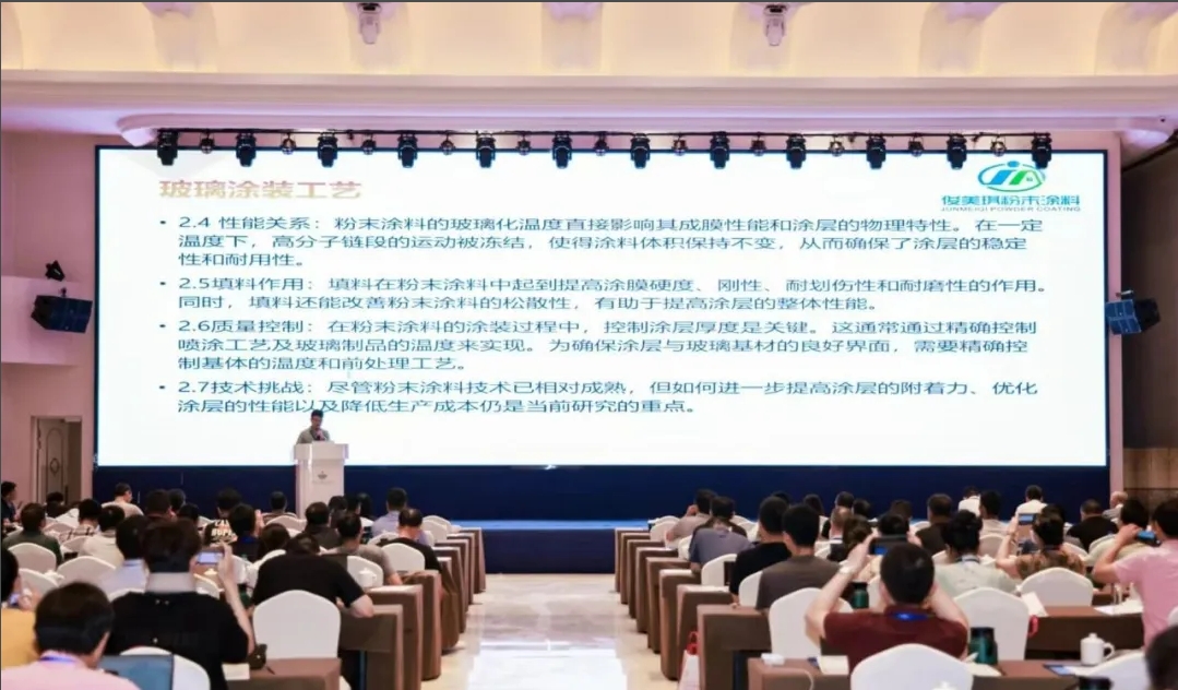 在大會的報告交流環(huán)節(jié),俊美琪總經(jīng)理汪千涵作題為《粉末涂料之玻璃涂裝》的演講,圍繞玻璃基材處理、玻璃涂裝工藝等要點,深入分享了俊美琪在玻璃粉末涂裝領(lǐng)域的獨特觀點,為現(xiàn)場觀眾帶來一場深刻的技術(shù)交流盛宴。