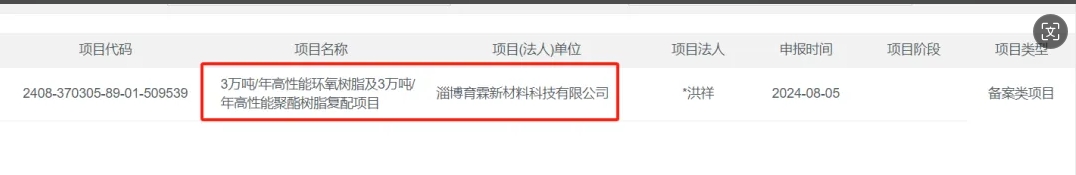 近日,淄博育霖新材料科技有限公司,3萬(wàn)噸/年高性能環(huán)氧樹(shù)脂及3萬(wàn)噸/年高性能聚酯樹(shù)脂復(fù)配項(xiàng)目,申請(qǐng)項(xiàng)目備案。