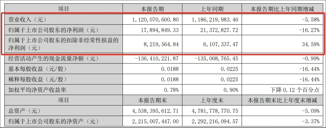 半年報(bào)中指出,神劍股份2024年上半年實(shí)現(xiàn)營(yíng)業(yè)收入入11.2億元,較上年同期下降5.58%;實(shí)現(xiàn)凈利潤(rùn)1789.48萬(wàn)元,較上年同期下降16.27%;實(shí)現(xiàn)扣非后凈利潤(rùn)821.96萬(wàn)元,較上年同期增長(zhǎng)34.59%。截至2024年6月30日,神劍股份資產(chǎn)總額45.38億元,歸屬于上市公司股東的凈資產(chǎn)22.15億元,較上年末下降3.37%,資產(chǎn)負(fù)債率50.29%。