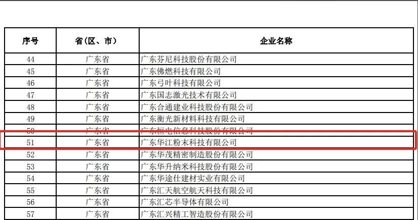 近日,廣東省工業(yè)和信息化廳發(fā)布了關(guān)于廣東省第六批專精特新“小巨人”企業(yè)名單的公示,其中,廣東華江粉末科技有限公司、雅圖高新材料股份有限公司263家企業(yè)被認(rèn)定為專精特新“小巨人”。