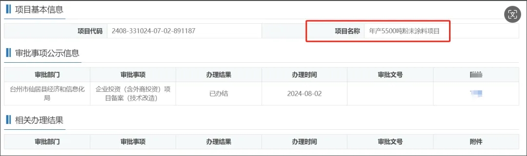 根據(jù)披露,項(xiàng)目總投資2210萬(wàn)元,位于仙居縣白塔鎮(zhèn)前洋聚集區(qū)。項(xiàng)目主要采用先進(jìn)工藝制造技術(shù)或工藝,引進(jìn)具有國(guó)內(nèi)先進(jìn)水平的高科技設(shè)備,在公司原有項(xiàng)目不變,增加投資強(qiáng)度。提高畝均稅收,對(duì)接原有項(xiàng)目,并無(wú)廢水,無(wú)廢氣,無(wú)廢渣,符合國(guó)家行業(yè)發(fā)展方向前提下,依靠院校技術(shù)資源,項(xiàng)目建成后形成年產(chǎn)為5500噸的粉末涂料的生產(chǎn)能力,創(chuàng)造年產(chǎn)值1.1億元。
