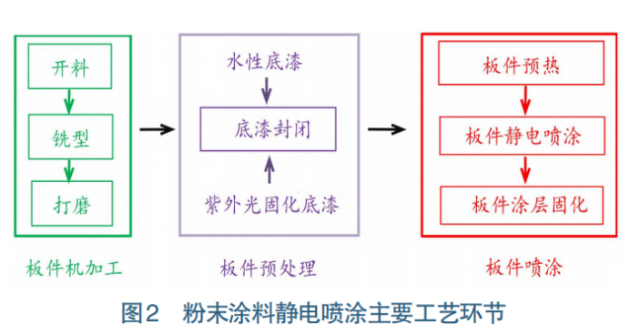 (1)研制粉末涂料靜電噴涂專用纖維板并制定相關(guān)標(biāo)準(zhǔn),對板材含水率、密度及其均勻性、熱穩(wěn)定性要進(jìn)行嚴(yán)格控制;研發(fā)可直接靜電噴涂的纖維板或其他木質(zhì)材料新產(chǎn)品,克服板件需進(jìn)行底漆封閉的弊端。