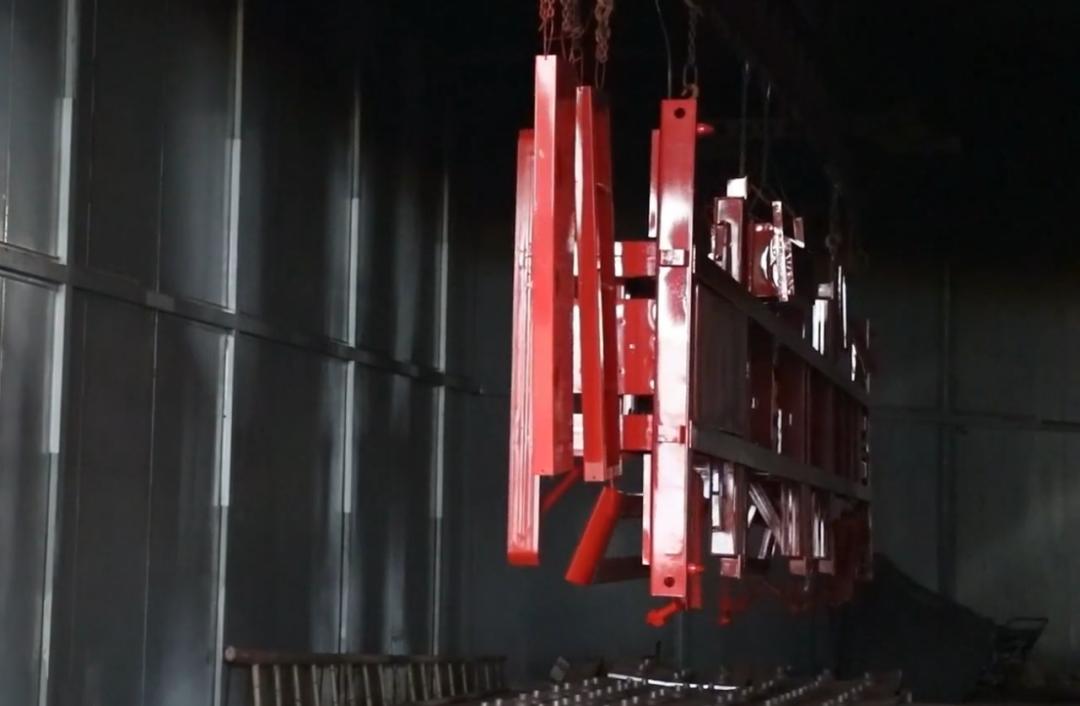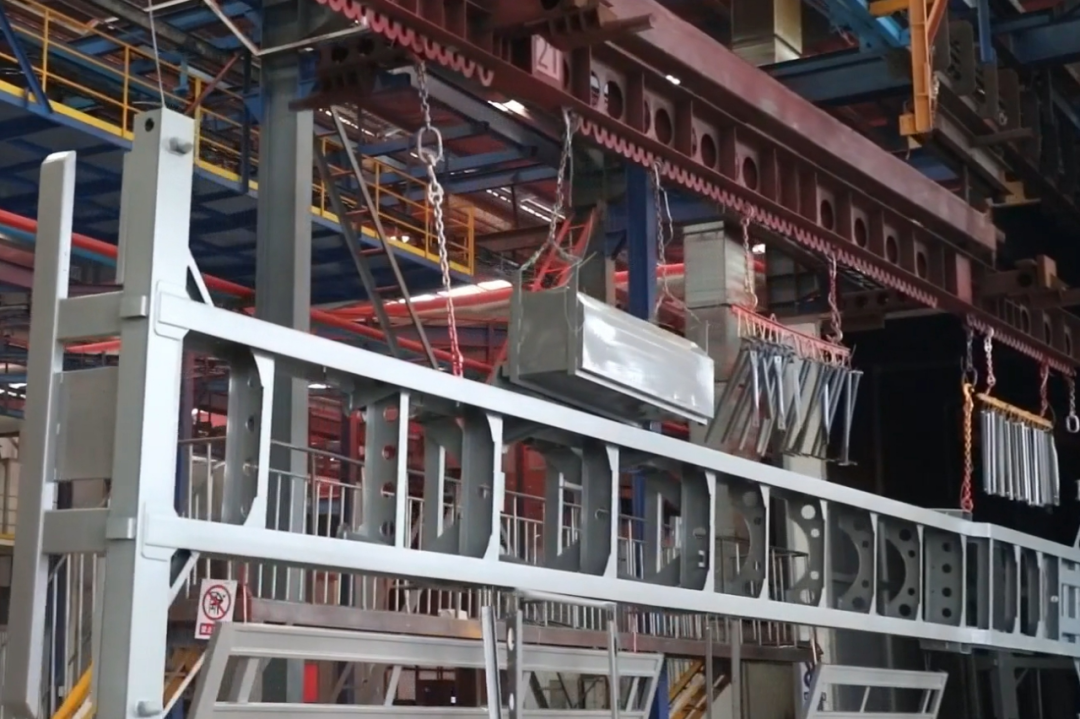 在山東貝格爾防護(hù)材料科技有限公司(下稱“貝格爾”)的集中噴涂共享中心,一排排車(chē)架依次進(jìn)入“電泳池”,經(jīng)過(guò)脫脂、表調(diào)、磷化、電泳等一系列工序,完成漆膜包覆,實(shí)現(xiàn)了揮發(fā)性有機(jī)物零排放。