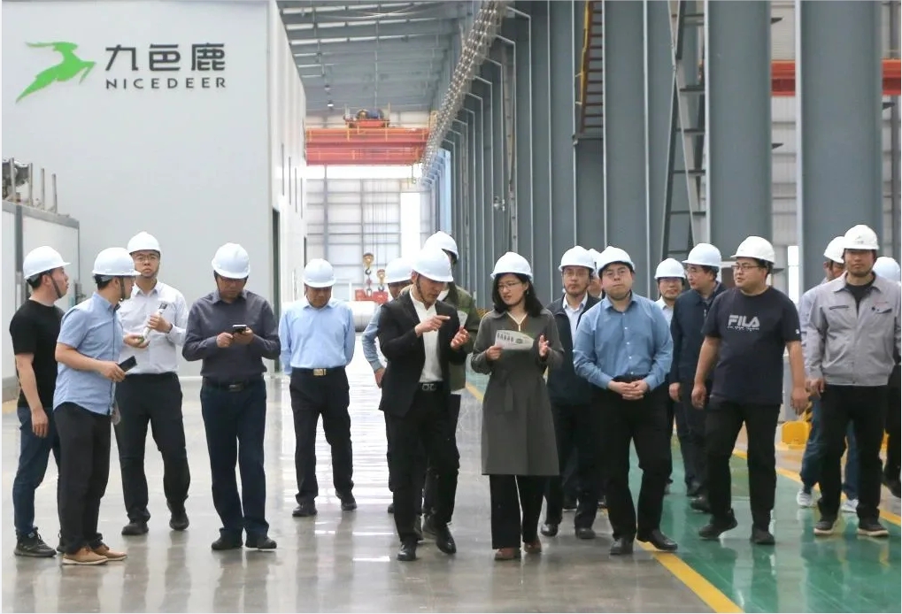 4月18日,生態(tài)環(huán)境部大氣環(huán)境司固定源處處長王鳳一行來山東九色鹿新型材料有限公司(下稱“九色鹿”)就彩鋼板產(chǎn)業(yè)集群治理工作進(jìn)行調(diào)研,對(duì)九色鹿公司堅(jiān)持走技術(shù)創(chuàng)新道路,推進(jìn)“油轉(zhuǎn)粉”工藝,從彩鋼生產(chǎn)源頭控制污染,生產(chǎn)過程揮發(fā)性有機(jī)物(VOCs)實(shí)現(xiàn)了零排放給予高度評(píng)價(jià)。賽高粉末技術(shù)作為九色鹿彩涂板油轉(zhuǎn)粉線體、粉末涂料供應(yīng)商全程陪同。
