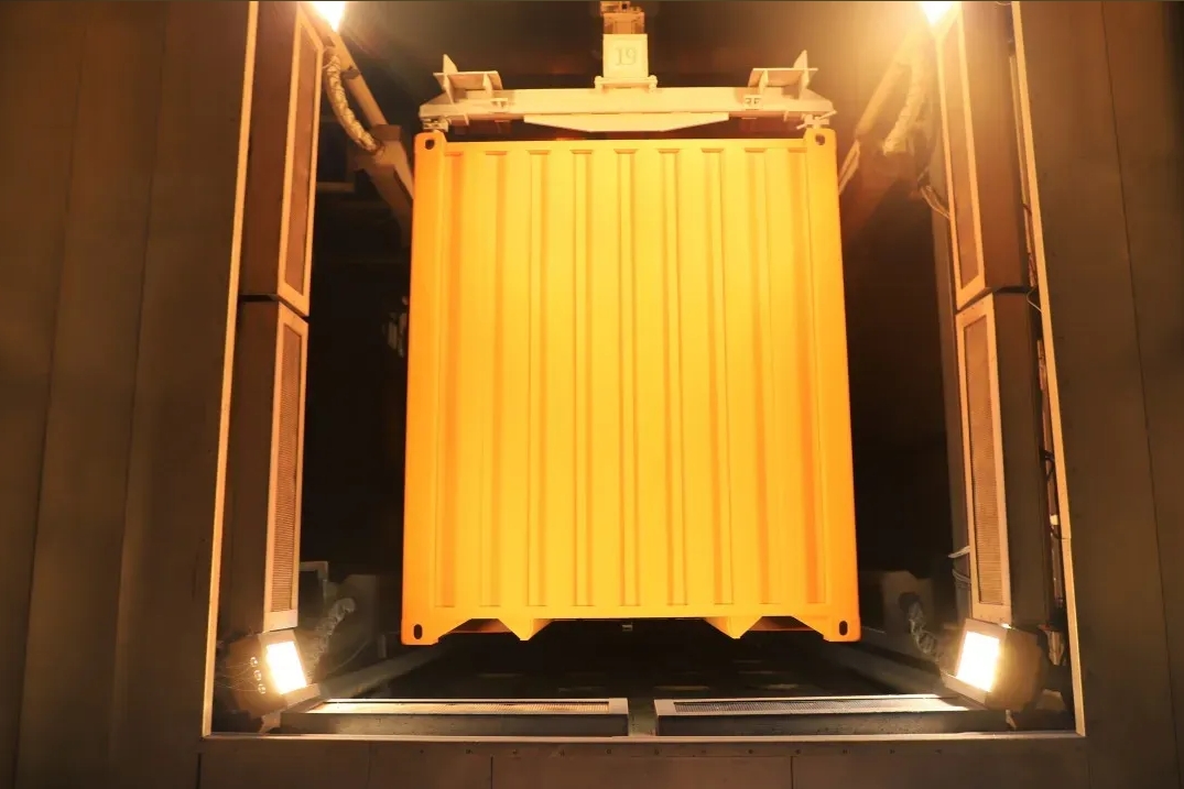 集裝箱整箱全粉末涂裝線比傳統(tǒng)涂裝線節(jié)約用工成本達(dá)90%以上。